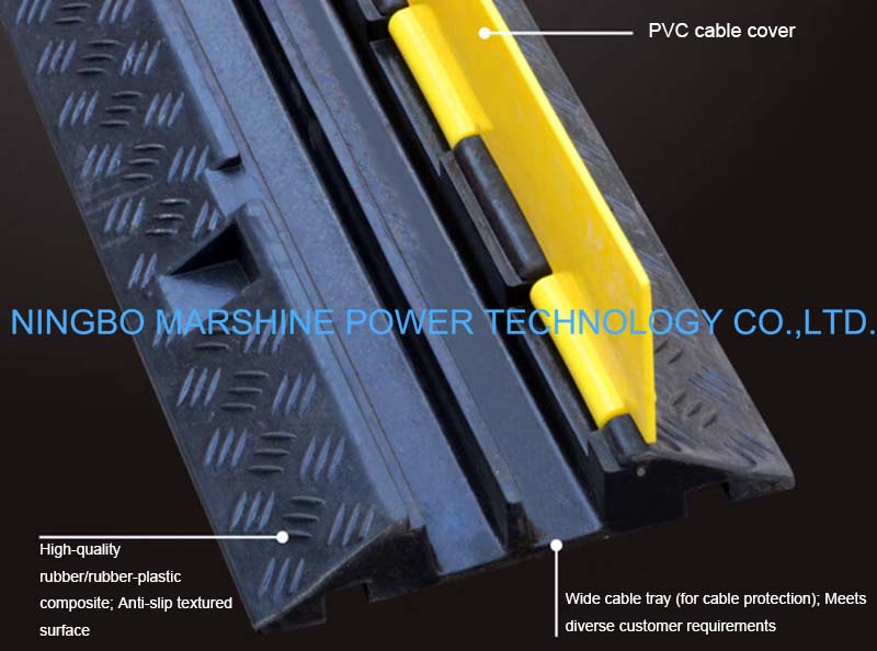 vår MARSHINE kabelkabel täcker golvet kan skydda elektriska och kommunikationskablar från mekaniska skador på industri- och byggarbetsplatser, och kan hålla kablarna organiserade samtidigt som man förhindrar snubbelrisk i det offentliga området, eller användas för att säkerställa säker passage av fordon och arbetare över kraftledningar.