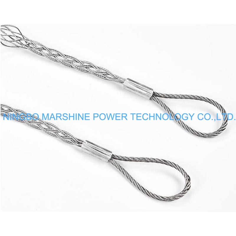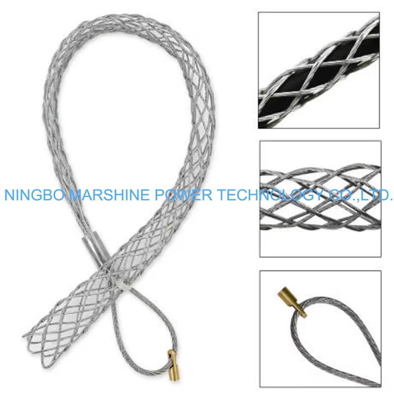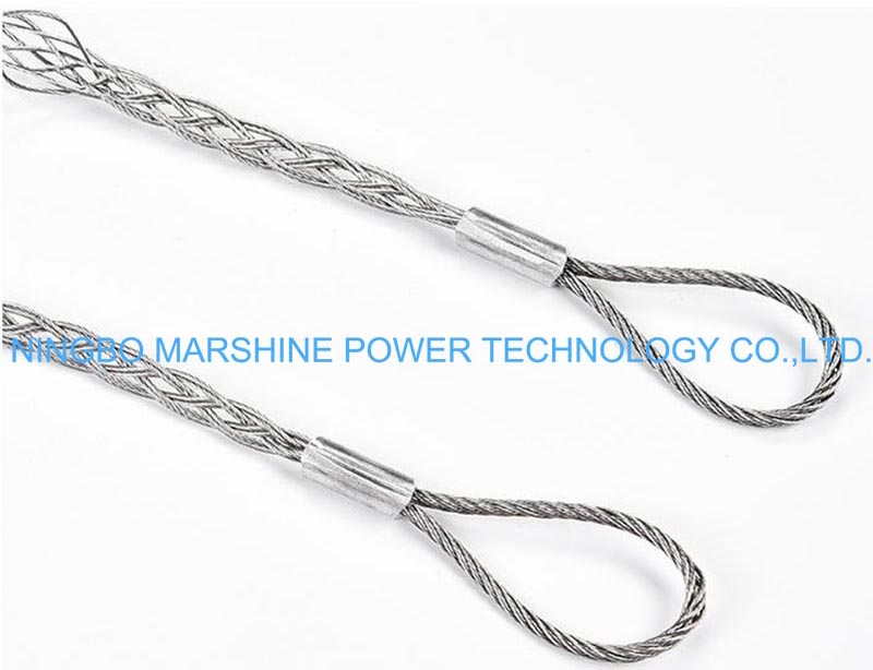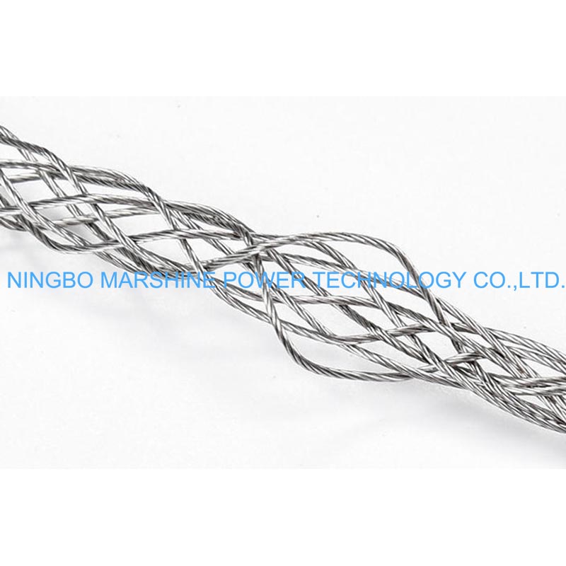 MARSHINE galvaniserande stålkabeltrådssocka är tillverkad av den höghållfasta ståltråden vävd till en tät, expanderbar nätstruktur, som kan göra det möjligt för den att sträcka sig och anpassa sig till kabeldiametrarna från 19 mm till 130 mm som täcker de vanliga storlekarna för kraftöverföringskablar, telekomledningar och industrikablarna. Denna tråddragningsstrumpa har en förstärkt öppen ände med en kraftig ögla, som gör den lätt att fästa vid att dra verktygen eller lyfta krokarna utan att glida under operationen.