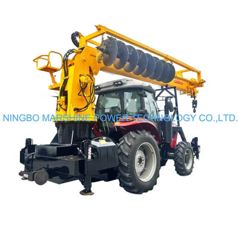 As a powerful yet reliable machine that with the high lifting capacity up to 3 tons, and the dual functionality which integrates the drilling and pole lifting ability into one machine for the higher efficiency, this MARSHINE Lifting Drill integrated Pole Erection Machine with the durable constructions that built with the robust materials is able to withstand the heavy-duty field applications, and can offer the users with the powerful drilling performance due to its equipped reliable drilling system, which offers the accurate and quick Polhålberedning. Dess kompakta struktur tillåter också den praktiska rörelsen och erbjuder användarna anpassningsförmågan till de olika terrängen.