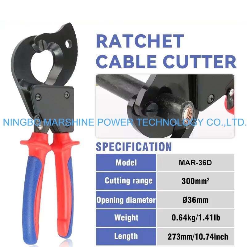 Vår MARSHINE Ratchet Type Sharp Poled Edge Cable Cutter kan användas i stor utsträckning vid kapning av bepansrade och andra kraftiga strömkablar under installations- eller reparationsarbetet.