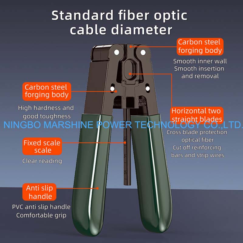 Vår MARSHINE som en kinesisk stor leverantör av installationsverktyg för telekommunikationslinjer, äger 20 års erfarenhet för att förse användare över hela världen med effektiva verktyg för förberedelse av fiberoptiska kablar till ett konkurrenskraftigt pris. Och denna MARSHINE standard fiberoptiska kabelavisoleringstång är ett standardverktyg för avisolering av fiberoptiska kablar, som används för att hantera 1/2 kärna fiberberedning fungerar med lätthet.